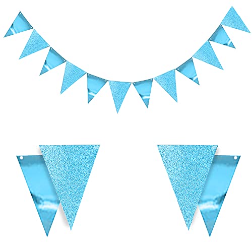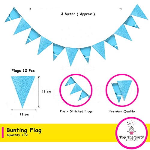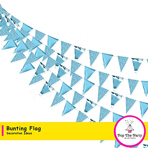 Pop the Party Triangle Flag Bunting Banner,Vintage Style Pennant Banner for Wedding, Baby Shower, Event 12pcs Flags (Blue)