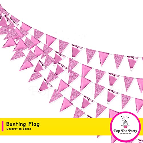 Pop the Party Triangle Flag Bunting Banner,Vintage Style Pennant Banner for Wedding, Baby Shower, Event 12pcs Flags (Pink)