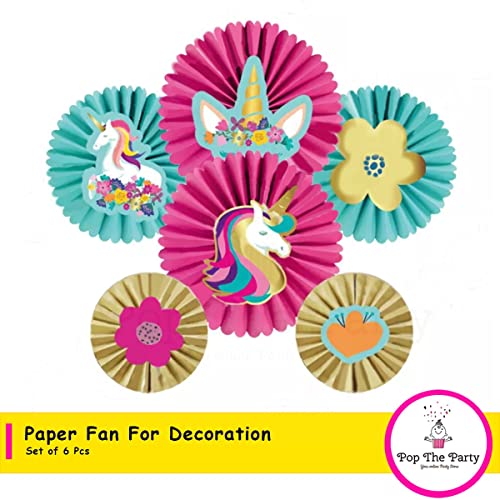 HomeBabyParty SuppliesUnicorn Party Decorations Hanging Paper Fans Unicorn Birthday Party Baby Showers for Girls Children Round Events Accessories Set of 6