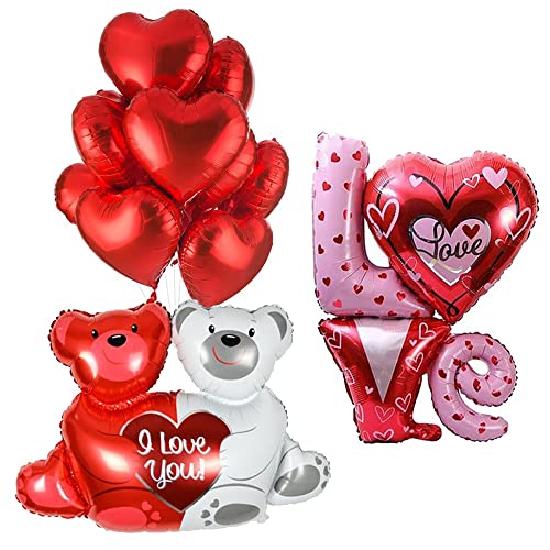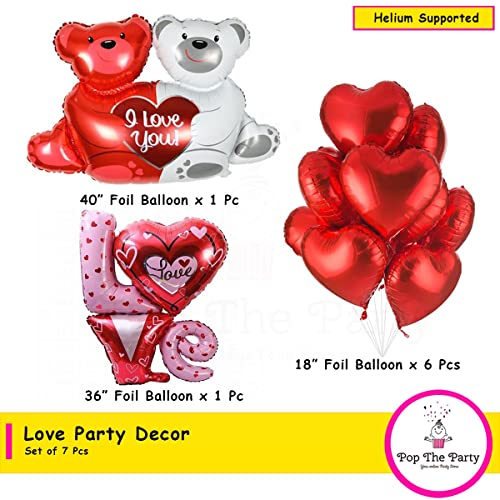 HomeBabyParty SuppliesPop The Party Valentines Day Balloons Decor Kit, Metallic Red Heart Balloons, Love Balloons, Teddy Love-Bear Balloons Valentines Anniversary Party Decorations for The Home Set of 8