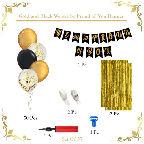 HomeBabyParty SuppliesPop The Party We are So Proud of You Banner Kit | Black and Gold Graduation Decorations Class | Proud of You Grad Banner | Graduation Party Decorations | Army Party Decorations. (PackOf57)