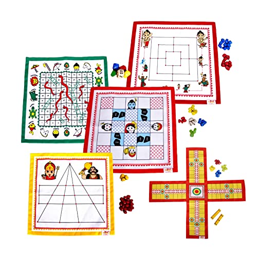 Desi Toys Indian Mythological Themed Board Games |Canvas Fabric Boards | Strategy Board Games | Play Mats | Family Games for Adults and | Ideal Gift (Pack of 5)