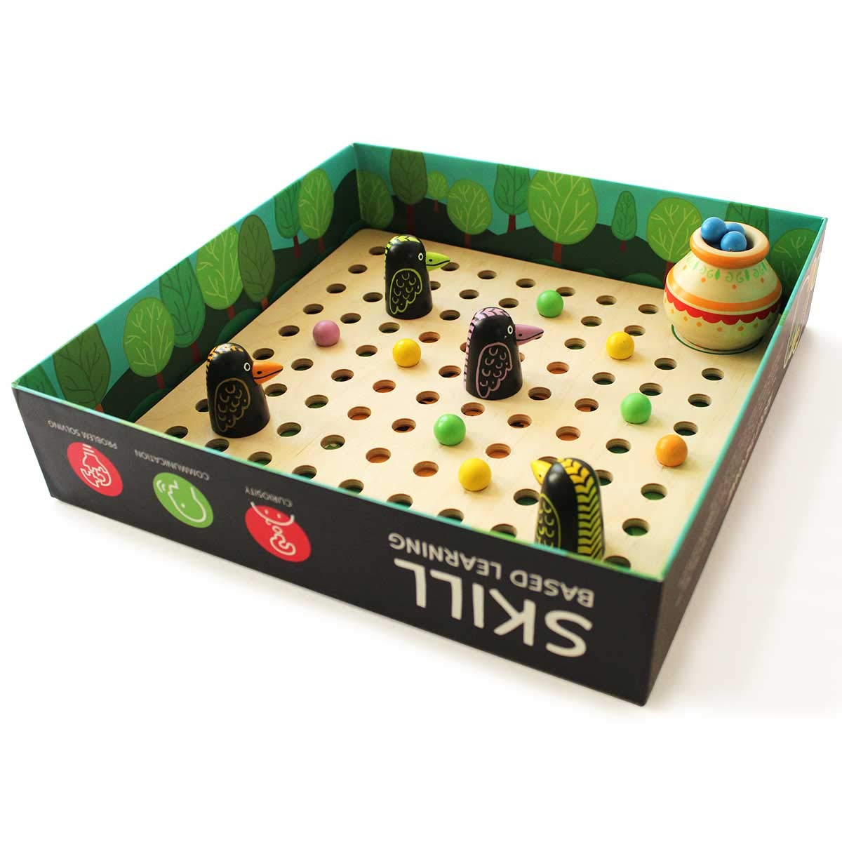 VARANASI WOODEN TOYS Thirsty Crow Wooden Board Game (Age 4 Years+) | Sharpens Strategic Thinking | Multiplayer/ Family Board Game