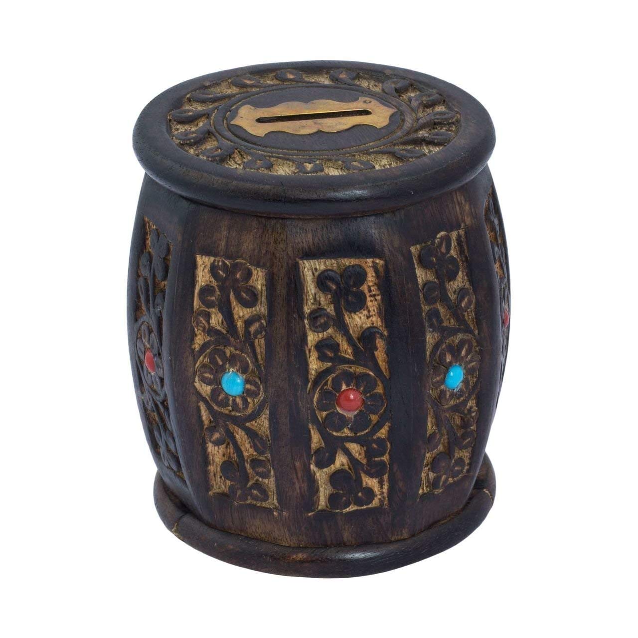 SAHARANPUR HANDICRAFTS Wooden Money/Piggy Bank Money Box Coin Box with Carved Design for Kids/Children. with Lock (5 * 5)
