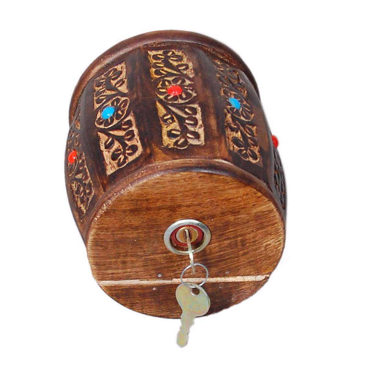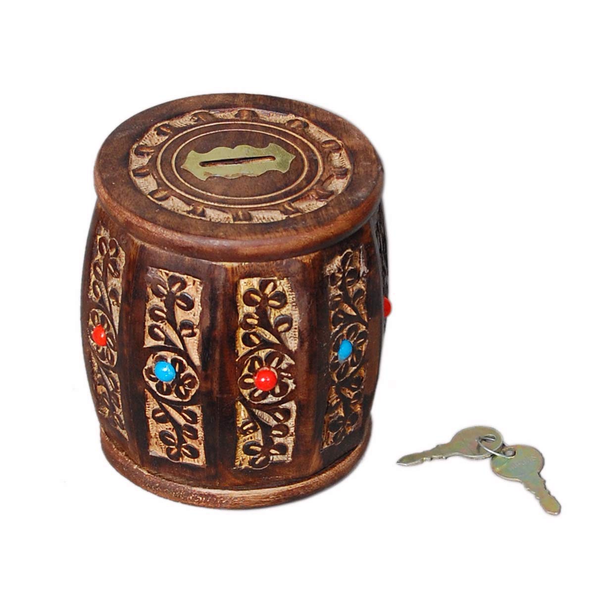 SAHARANPUR HANDICRAFTS Wooden Money/Piggy Bank Money Box Coin Box with Carved Design for Kids/Children. with Lock (5 * 5)